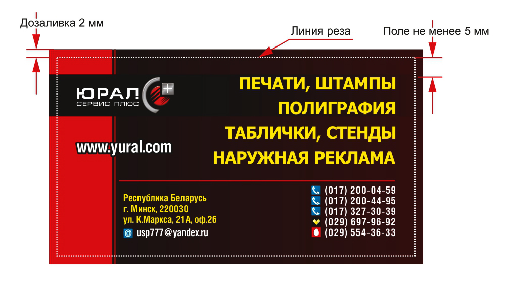 В визитных карточках по периметру обязательно поставьте дозаливки по 2 мм.
